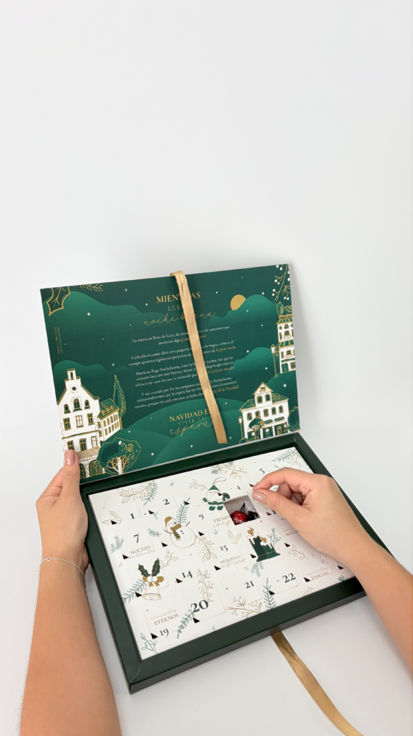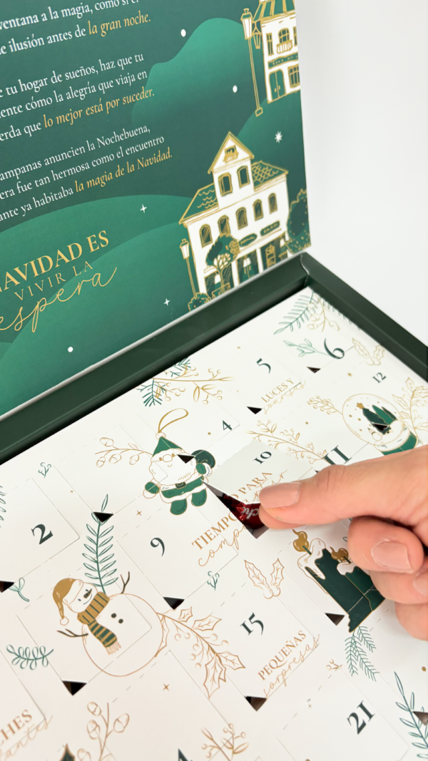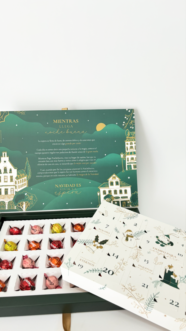 Empaque especial con 24 compartimiento de 3,5 cms cada uno para realizar tu calendario de adviento