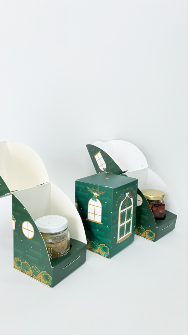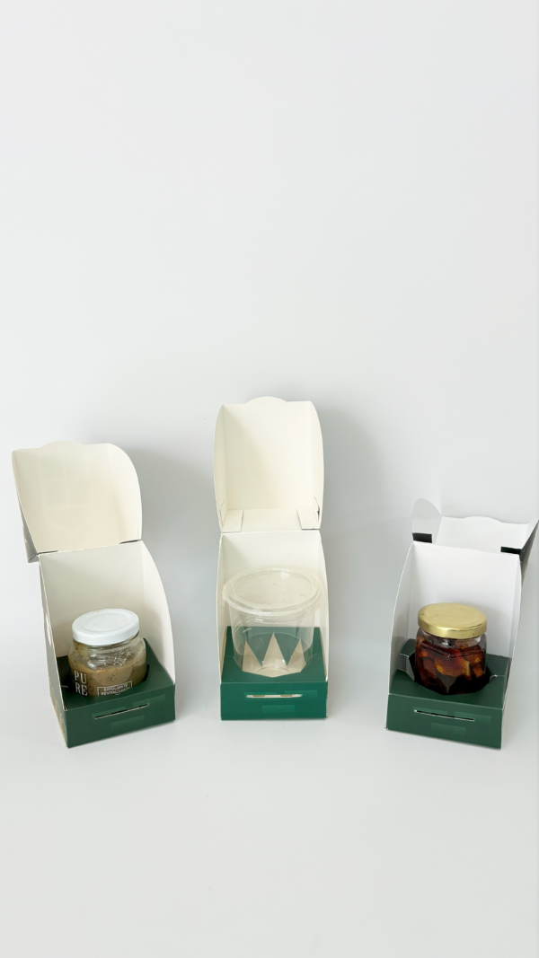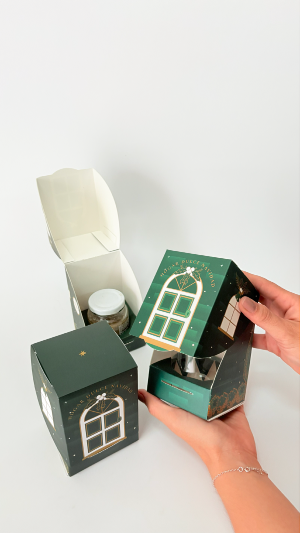 Empaque full impreso con nido interno 6 cms de diámetro, ideal para frascos.